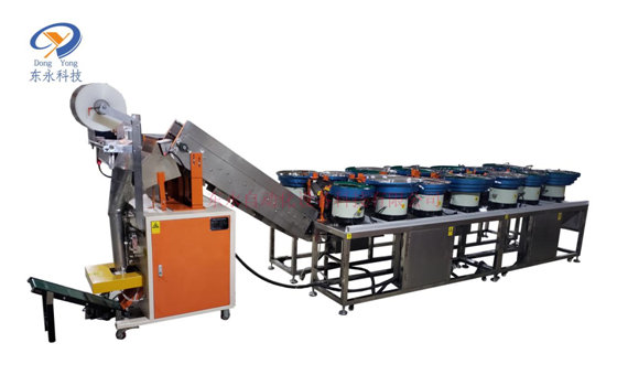 1、東永自動化自主研發五金包裝機特別適用于衛浴、鎖業、電工、電器、燈飾、家居裝飾等的零件膠體、塑料件、螺絲、螺母等等的組合包裝。