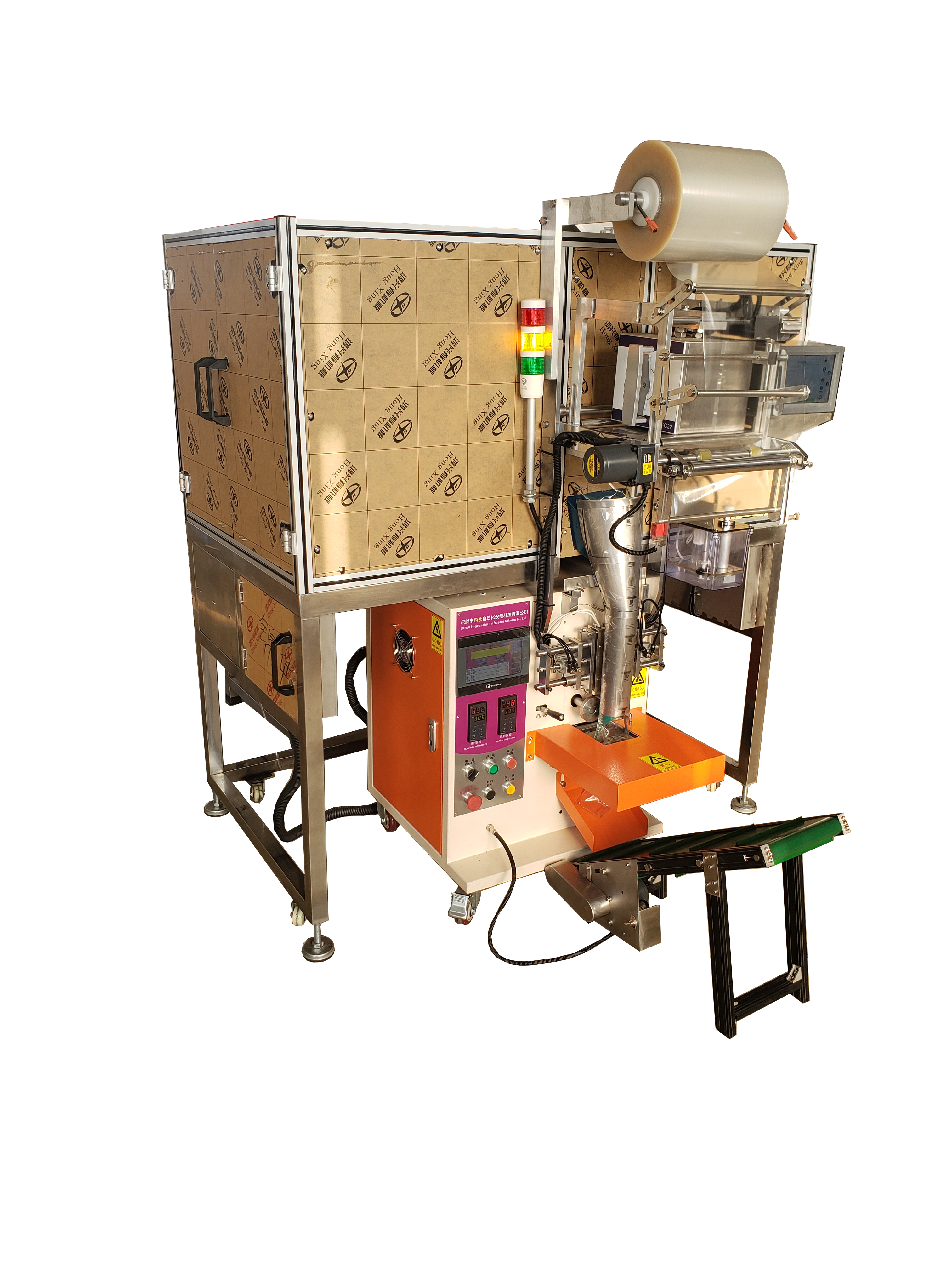 東莞市東永自動化設備科技有限公司自主研發生產的隔音罩五金件包裝機,針對于家具、衛浴、鎖業、電工、電器、燈飾、五金建材等制造工業的附屬安裝螺絲、五金配件,可自動完成計量、計數、制袋、充填、封和、切袋等工序。本機技術先進、操作方便、工作穩定,替代了預制袋成形方式,大大提高了工作效率,成功應用于各大型知名企業的附件自動包裝。